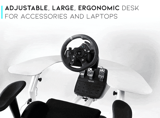 - A foldable and adjustable ergonomic desk for peripherals or accessory (such as joytstick, steering wheel, shifter or hotas)