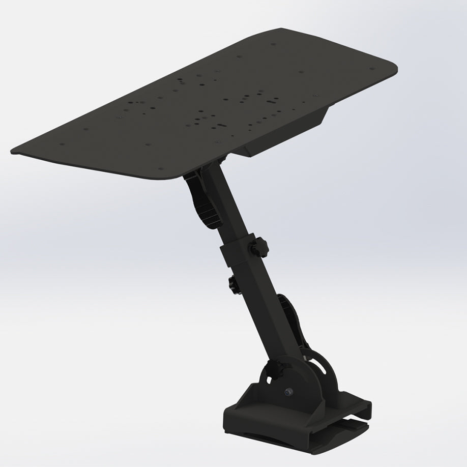 • A foldable and adjustable ergonomic desk for peripherals or accessory (such as joytstick, steering wheel, shifter or hotas)